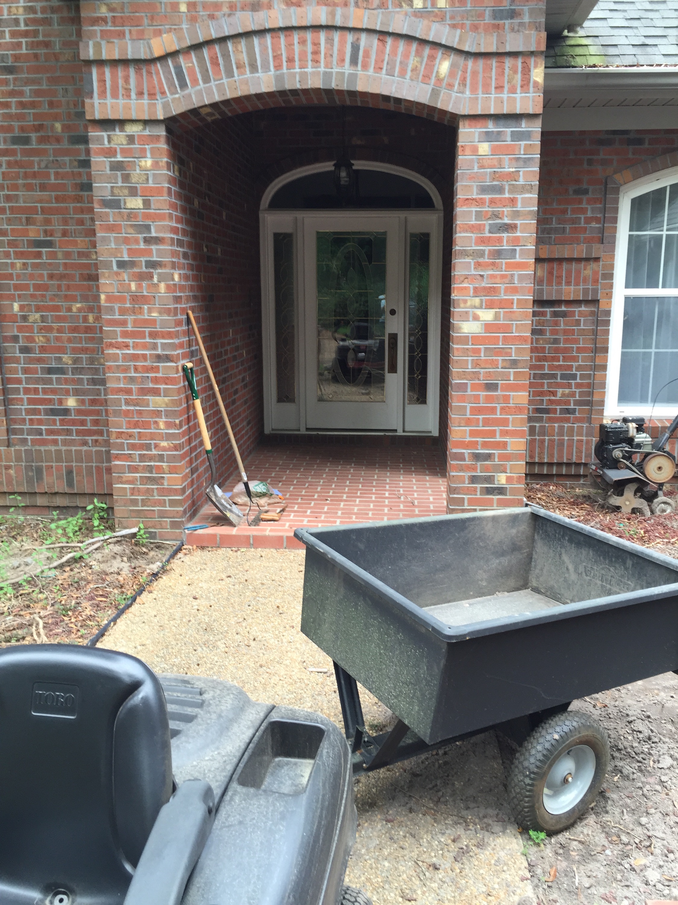 Studly Doright has begun working on the beautification of our front entryway. We have quite a bit of work to do and no clear idea of how we want to decorate this area. I’m not a gardener, so I’m not entertaining thoughts of planting anything, except maybe a few container plants. Suggestions are welcome.