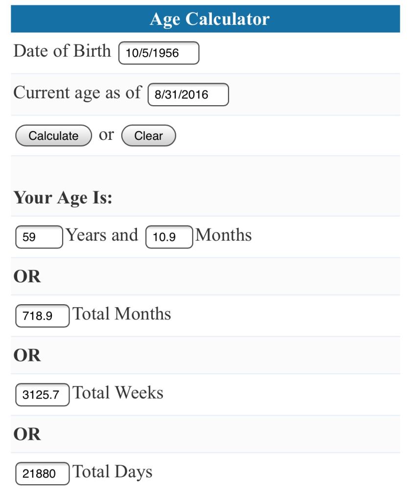In the meantime I’ve been contemplating numbers. Did you know you can google your exact age and a calculator will determine the number of days and months you’ve been on this earth?