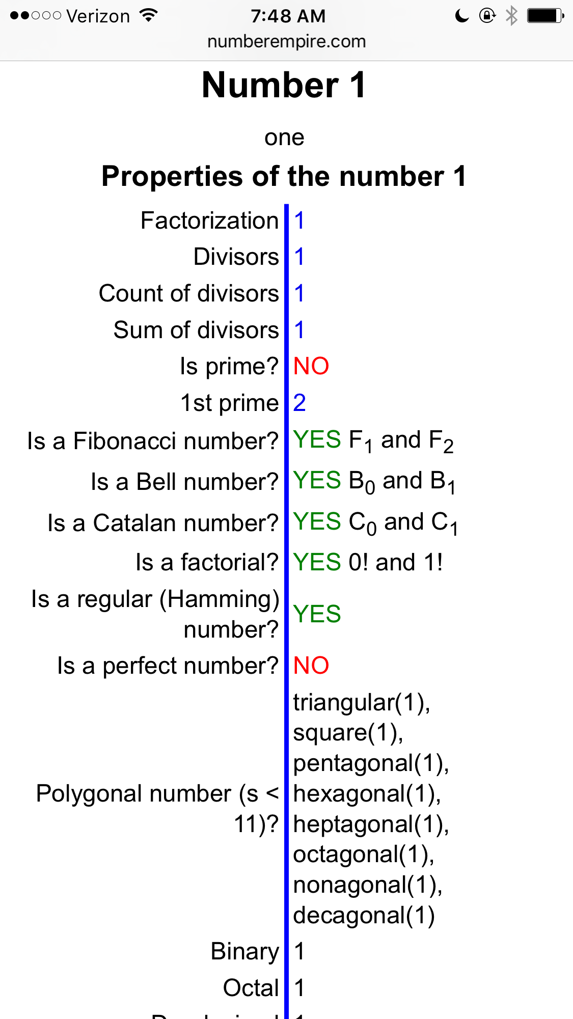 Kind of fascinating that the lowly number 1 has so much going for it.