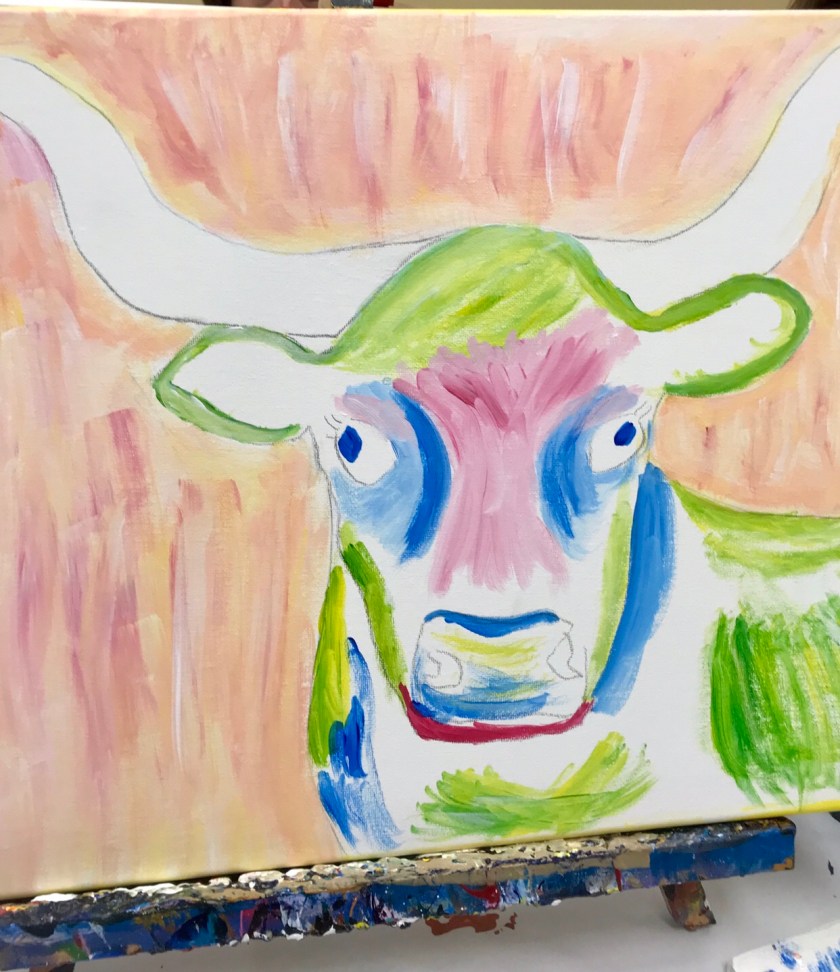 Here’s what Clarice (Yes, I named my cow) looked like after I’d worked on the background. You will perhaps note that I’m not all that accomplished at the fine art of painting.