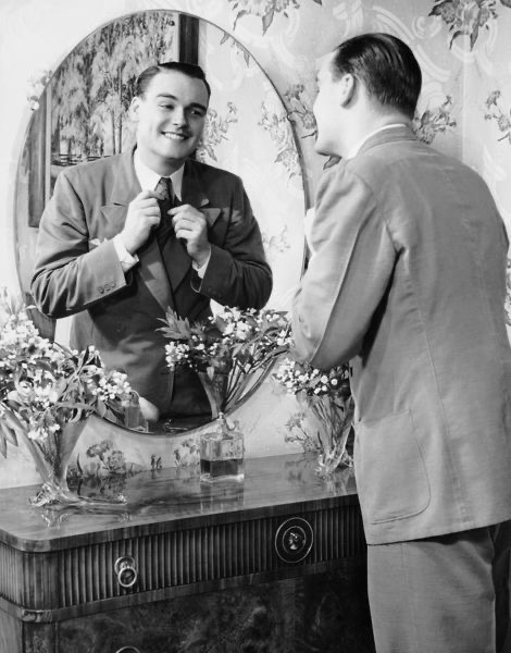 “Wouldn’t it be easier if you turned around and used the small mirror to reflect the back of your head into the big mirror?