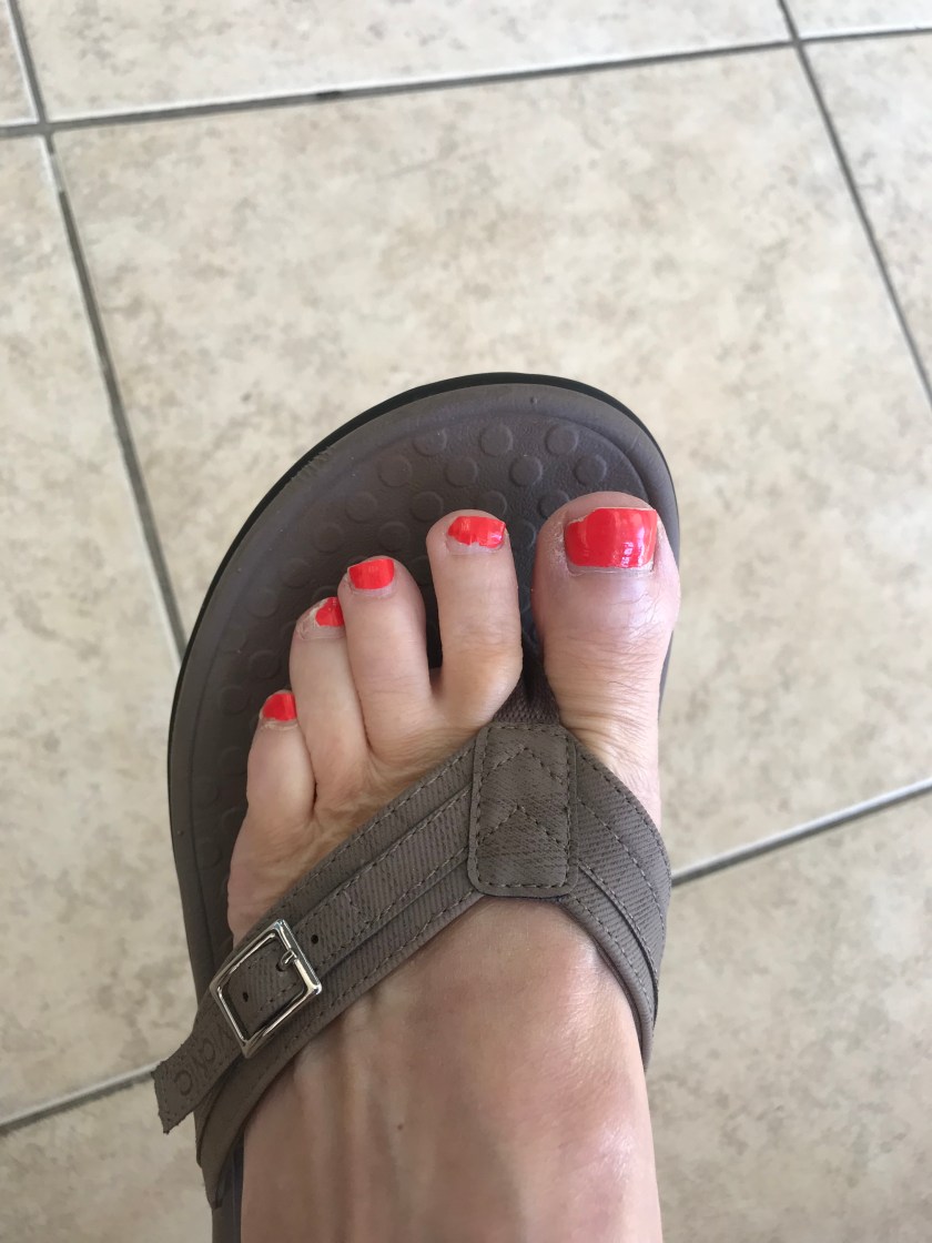 Just had a pedicure. I call this one,”Tan Line Tootsies.”