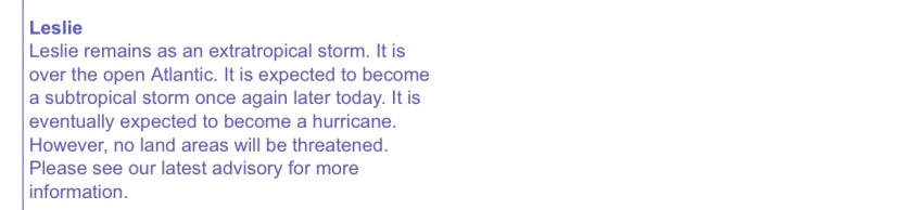 Welcome to the club, Hurricane Leslie. I hope they pronounce your name correctly.