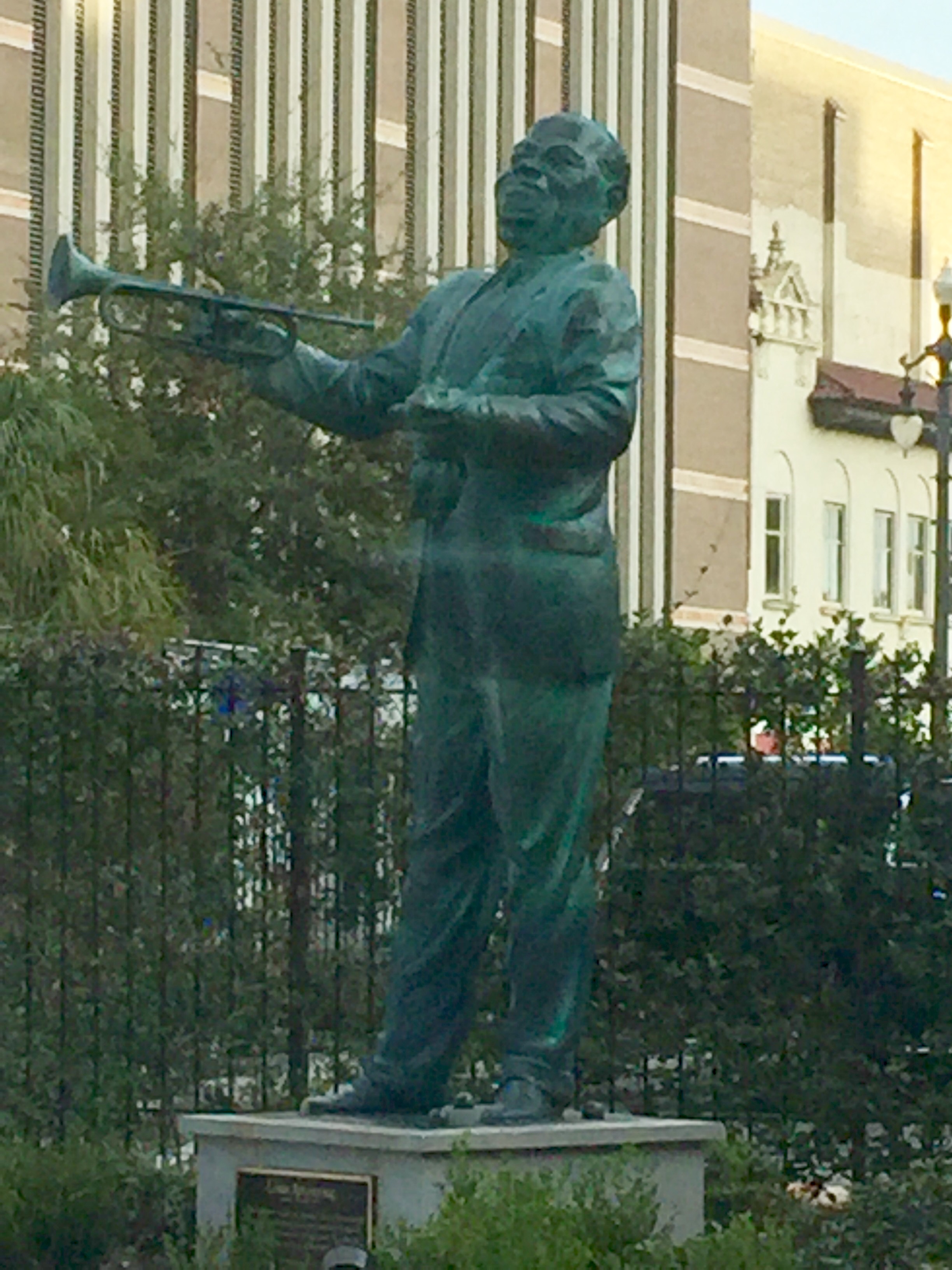 Ok, so Satchmo was only there in statue form, but the city was waking up around him in preparation for the game.