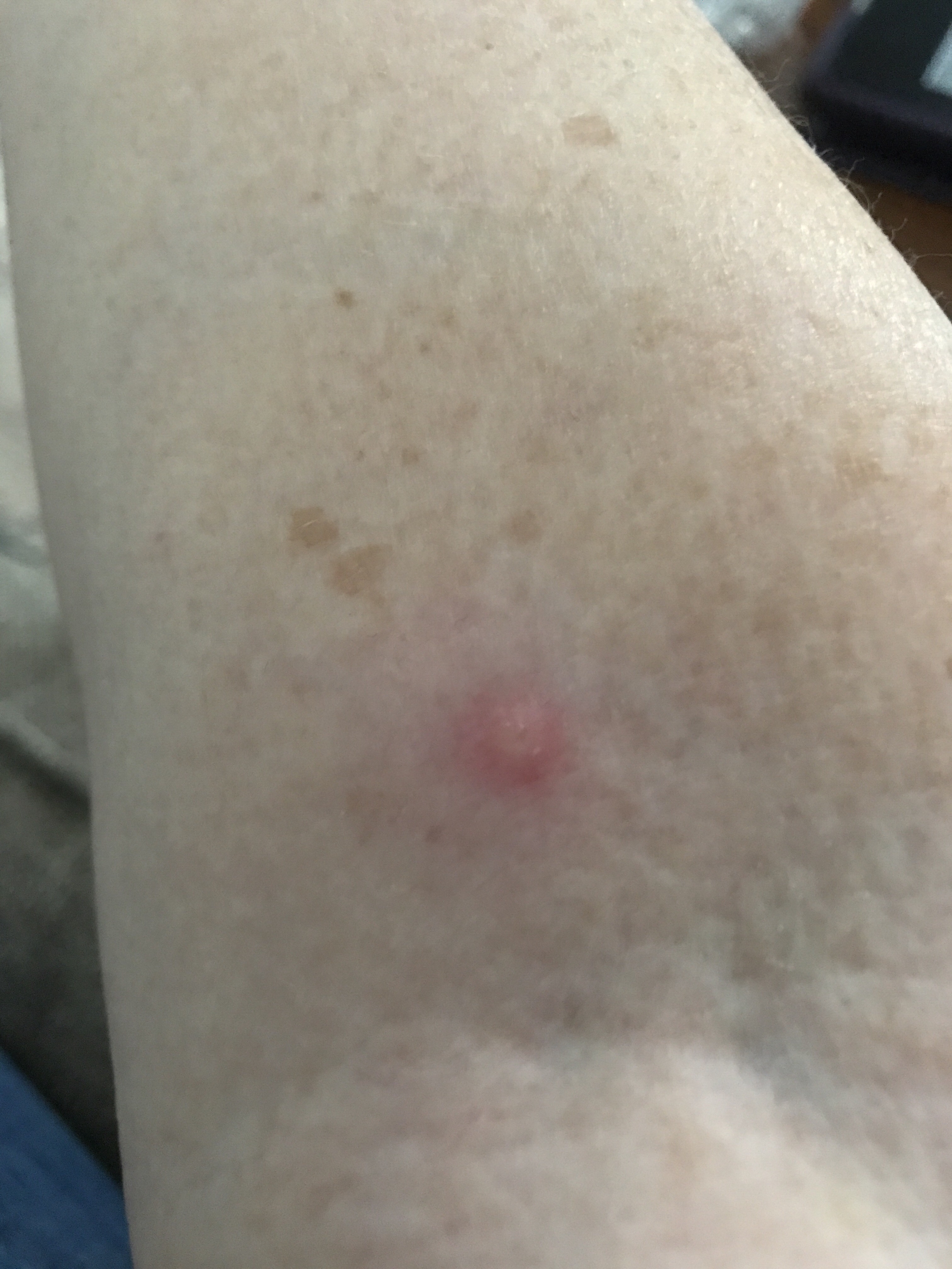 I am currently sporting two spider bites. One’s on my right ankle and gets little notice, but the other bite is in the bend of my right arm. I think the lady at the post office today thought I might be a heroin user. She certainly asked me a bunch of suspicious sounding questions about the package I was mailing: “Does this parcel contain anything fragile, liquid, perishable, or potentially hazardous, including lithium batteries and perfume?”