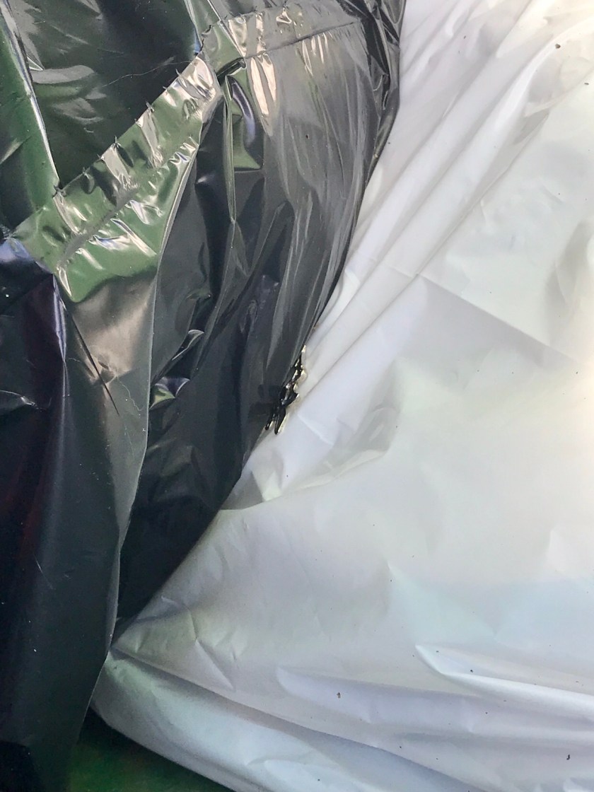 How did it get there, you might ask. I’d spent quite a bit of time cleaning the cats’ litter boxes yesterday morning. I dumped the litter into a large green bag and set it, along with our regular kitchen trash, in the garage so I could deposit them both in the big dumpster when I left to run errands later in the day. I do this on a regular basis with no problem.