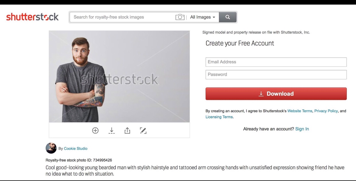 And here’s the Shutterstock photo the man’s image came from: