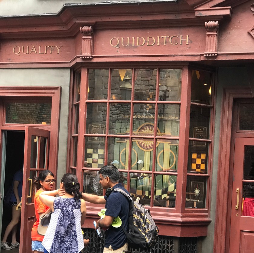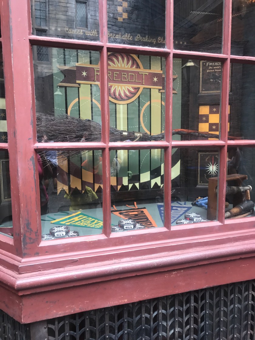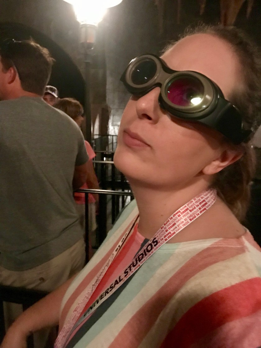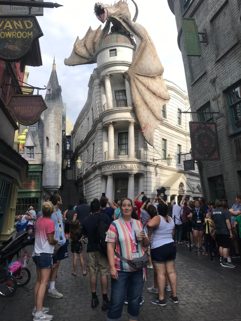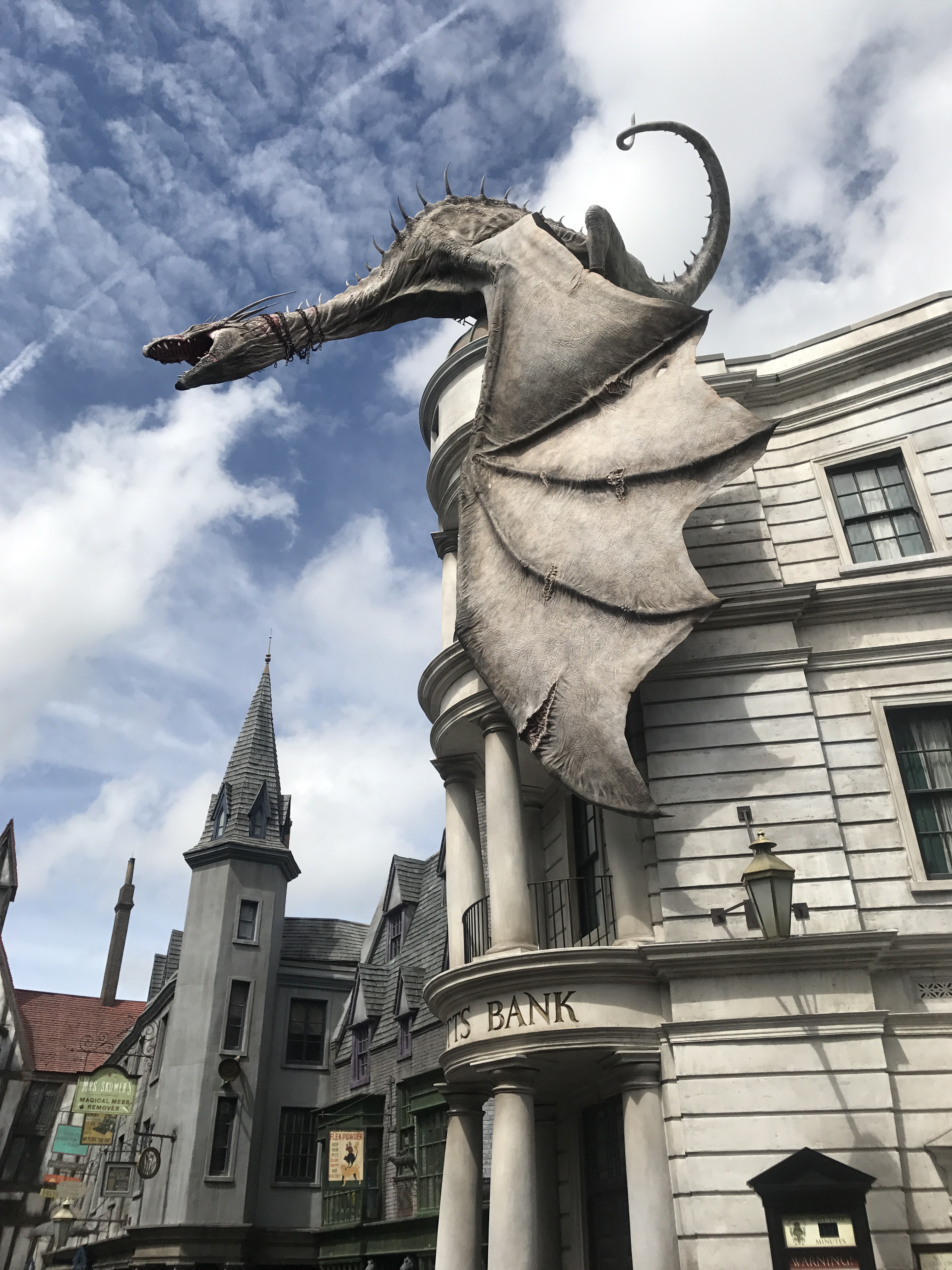 We arrived at Universal by eight a.m., along with those who had early admission because they were staying on property. To our surprise and delight we were waved through by one of the workers and were allowed to board the Escape from Gringott’s ride in the Wizarding World of Harry Potter along with the early admission crowd.