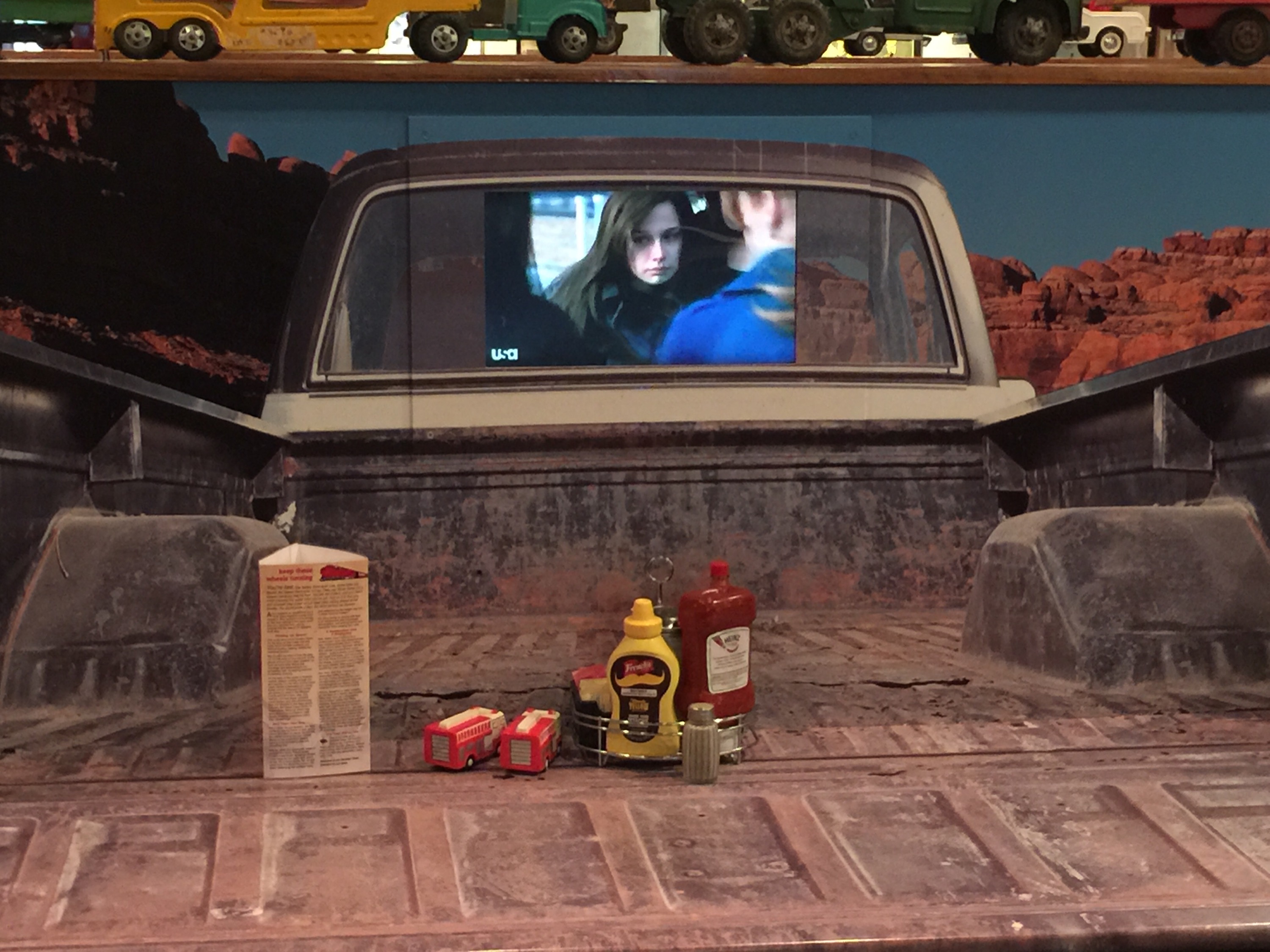 Away from the counter are regular tables, but there were also tailgates with small TV sets in the spirit of drive-in movies.