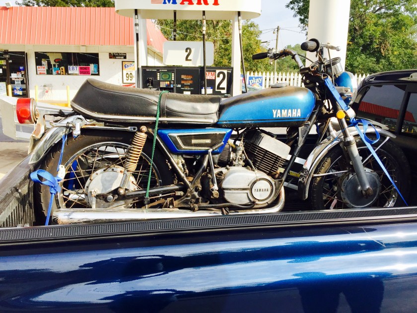 Studly and I arrived just in time for lunch. That’s his “new” ’72 Yamaha R5 in the photo.